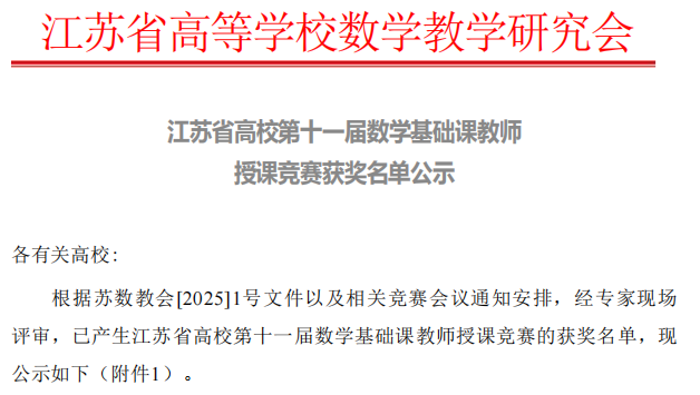 10月19日,江苏省高校第十一届数学基础课教师授课竞赛落幕。我院张一凡老师凭借严谨的教学逻辑、清晰的授课思路和富有感染力的教学表达,荣获二等奖,充分展现了我院教师良好的教学风采和专业素养。