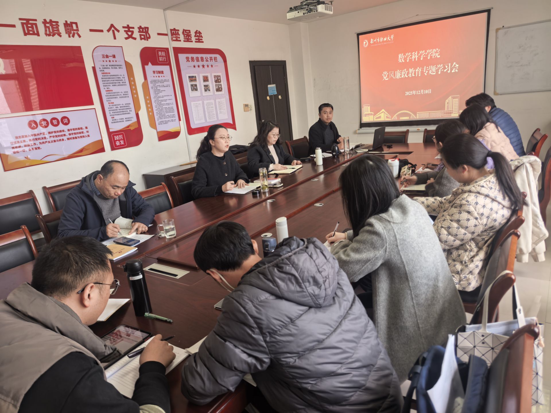 为深入贯彻落实全面从严治党要求,持续加强党风廉政建设,切实增强党员干部廉洁自律意识和拒腐防变能力,近日,数学科学学院党总支在图书馆718会议室召开了学院党风廉政教育专题学习会,学院班子成员以及全体党员参加了集中学习。