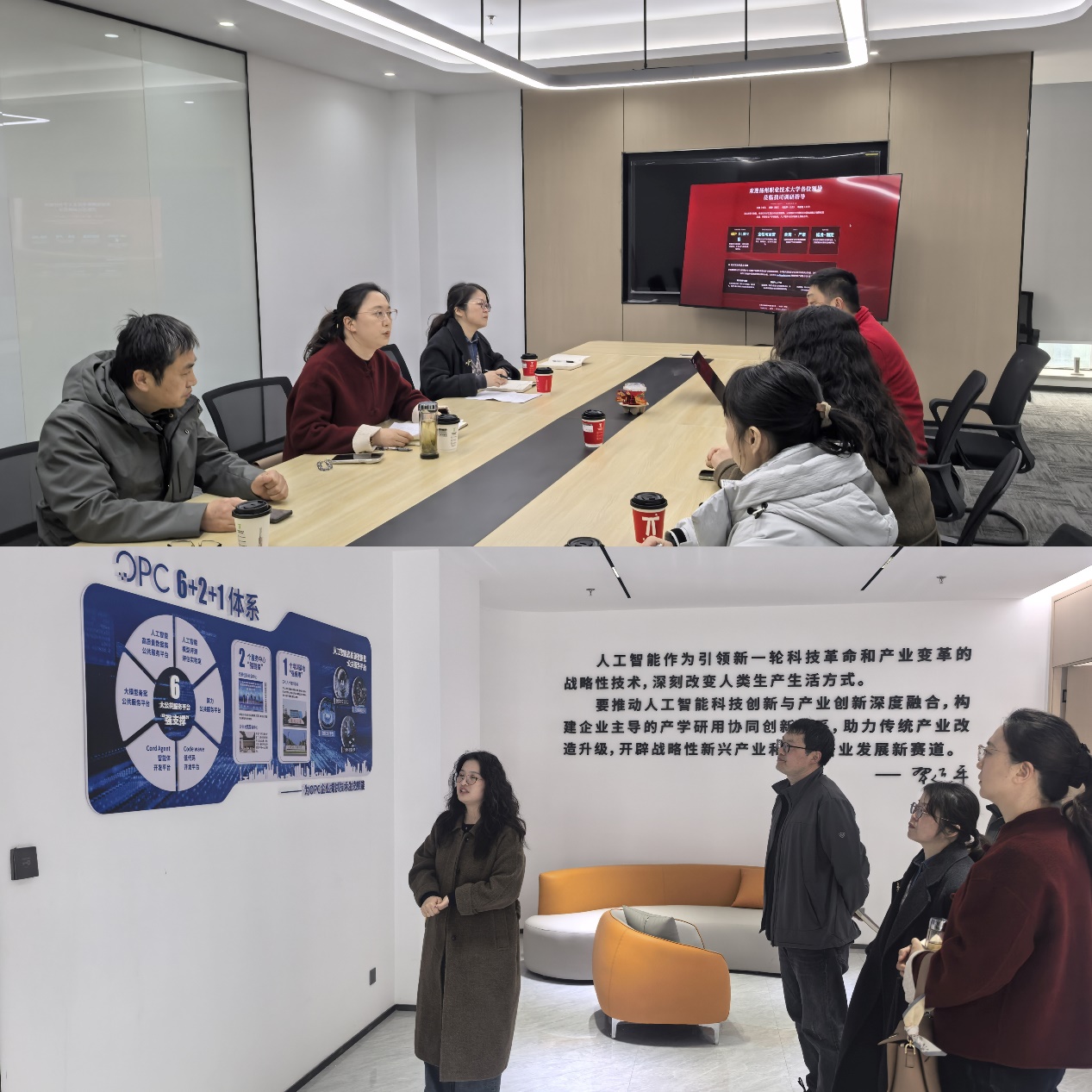 会后,调研组实地参观了园区新投入运行的OPC社区。该社区在开放平台协作、技术孵化等方面成果显著,为师生开展社会实践与创新创业提供了宝贵平台。