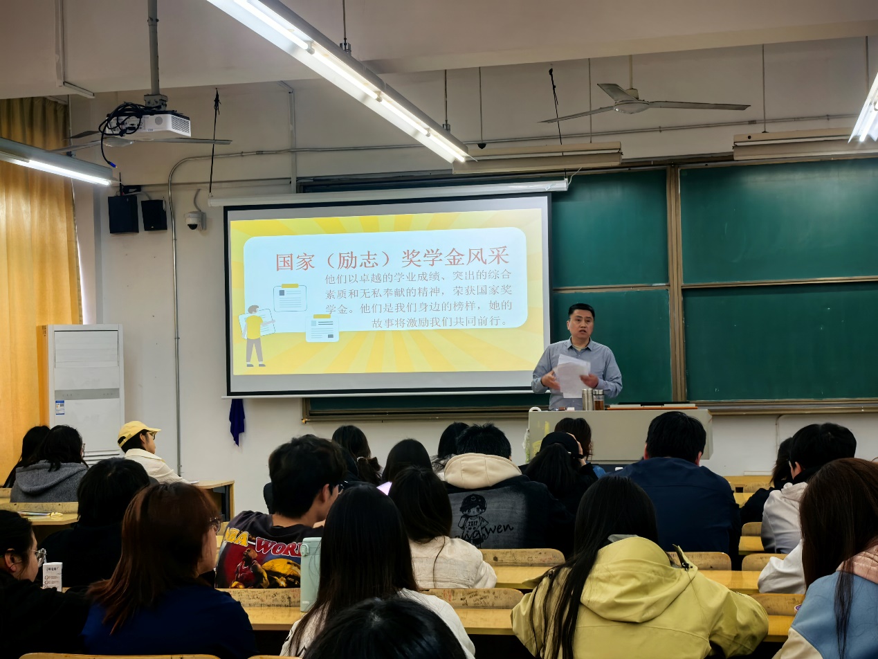 会上,李建龙围绕国家奖学金、国家励志奖学金的评选标准、申请流程及政策内涵进行了详细解读,强调“品学兼优、励志自强”的核心导向。同时,活动邀请了往届获奖学子代表分享成长经历。他们结合自身在学业成绩、综合素质、志愿服务等方面的真实故事,生动诠释了奋斗与励志的深刻内涵,赢得了现场同学的广泛共鸣。